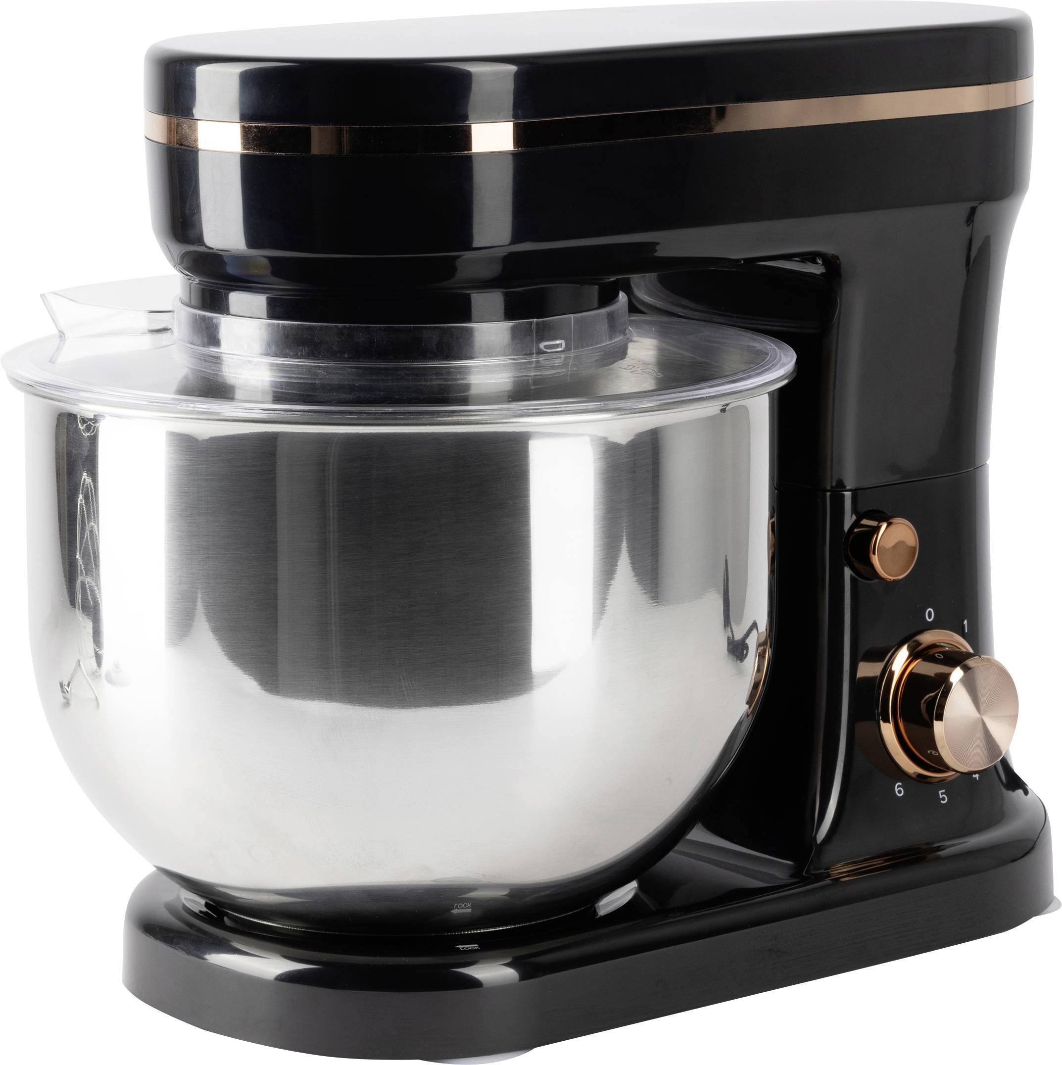 Die Effizienz und Bequemlichkeit, die dieser Stand Mixer Ihnen in der Küche bieten kann, ermöglicht es Ihnen, viel produktiver zu sein. Mit diesem 5-Liter-Mixer können Sie alle Zutaten gleichmäßig und konsistent mischen und so eine bessere Qualität bei Rezepten oder beim Backwaren erzielen. 6 Geschwindigkeitsstufen stehen Ihnen für Ihre neuen Rezepte zur Verfügung, welche mit dem Drehknopfes einfach zu bedienen sind. Bis zu 1,2 kg Mehl und Wasser können Sie mit dem leistungsstarken Motor verarbeiten. Der Sockel ist sehr stabil, so dass die Maschine fest auf der Arbeitsplatte steht und Sie während der Anwendung andere Gerichte zubereiten können. Im Lieferumfang sind verschiedene Zubehörteile enthalten, die Sie je nach Bedarf verwenden können: ein Knethaken, ein Butterschneebesen, ein Schneebesen für Eiweiß, ein Spritzschutz und ein Gehäuse.