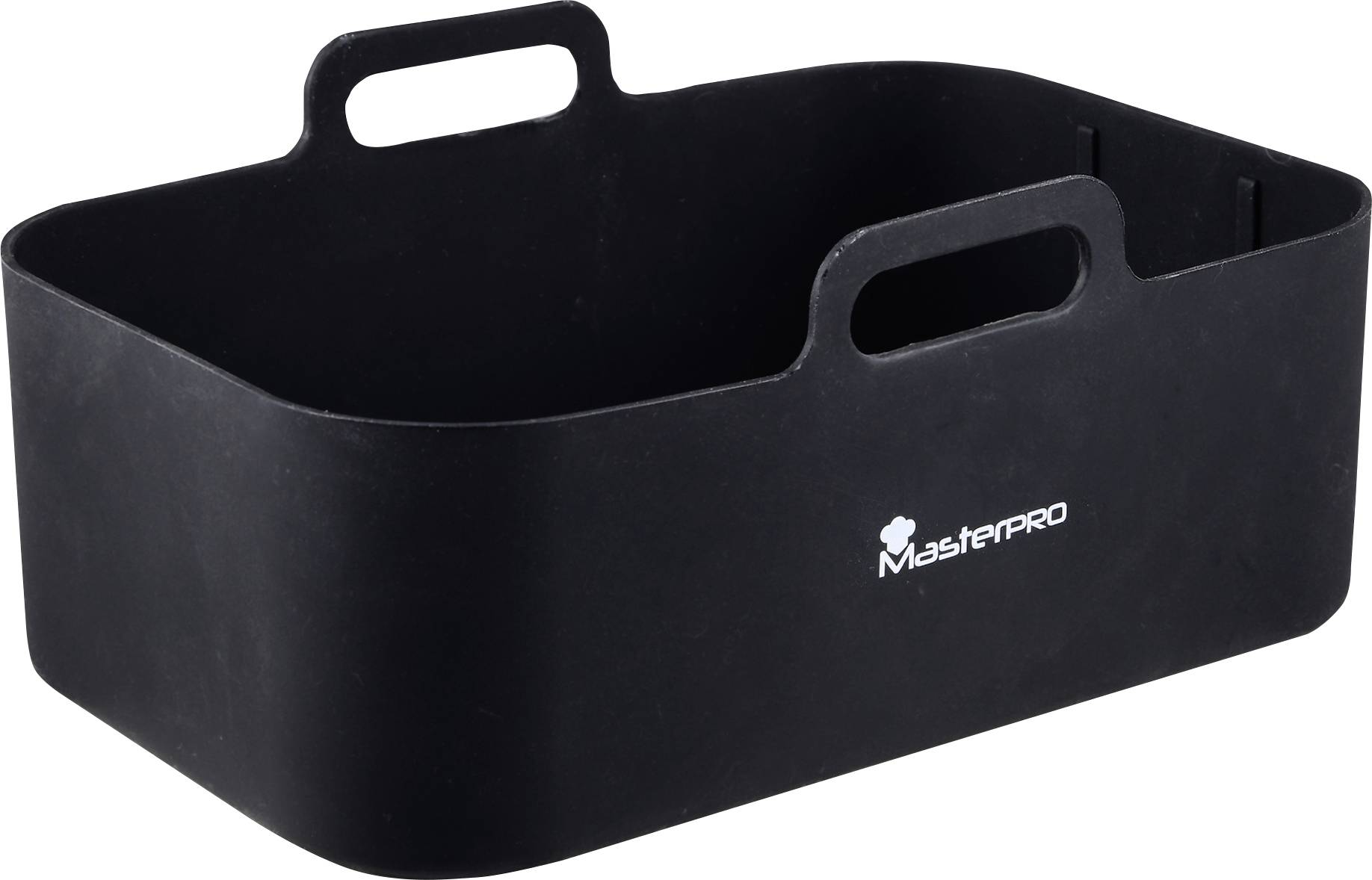 Backen Sie sicher und bequem! Die große Backform von Masterpro besteht aus einem schwarzen lebensmitteltauglichen Silikon. Dank seiner Widerstandsfähigkeit gegen hohe Temperaturen, seiner großen Haltbarkeit und seiner antibakteriellen Eigenschaften, ist diese perfekt geeignet für Heißluftfritteusen. Ein weiteres Hauptmerkmal dieses Materials ist seine Antihafteigenschaft. Unser Masterpro-Backform hat ein Muster auf dem Boden, welches die interne Luftzirkulation für ein schnelles und gleichmäßiges Garen mit Grilleffekt fördert und das Fett von den Lebensmitteln trennt, das im unteren Teil des Bodens verbleibt. Dank der zwei Griffe können Sie das gesamte Blech sicher und bequem handhaben. Was die Reinigung betrifft, so ist es ein leicht zu reinigendes Produkt, das Sie nur mit warmem Wasser und Seife von Hand waschen müssen!
