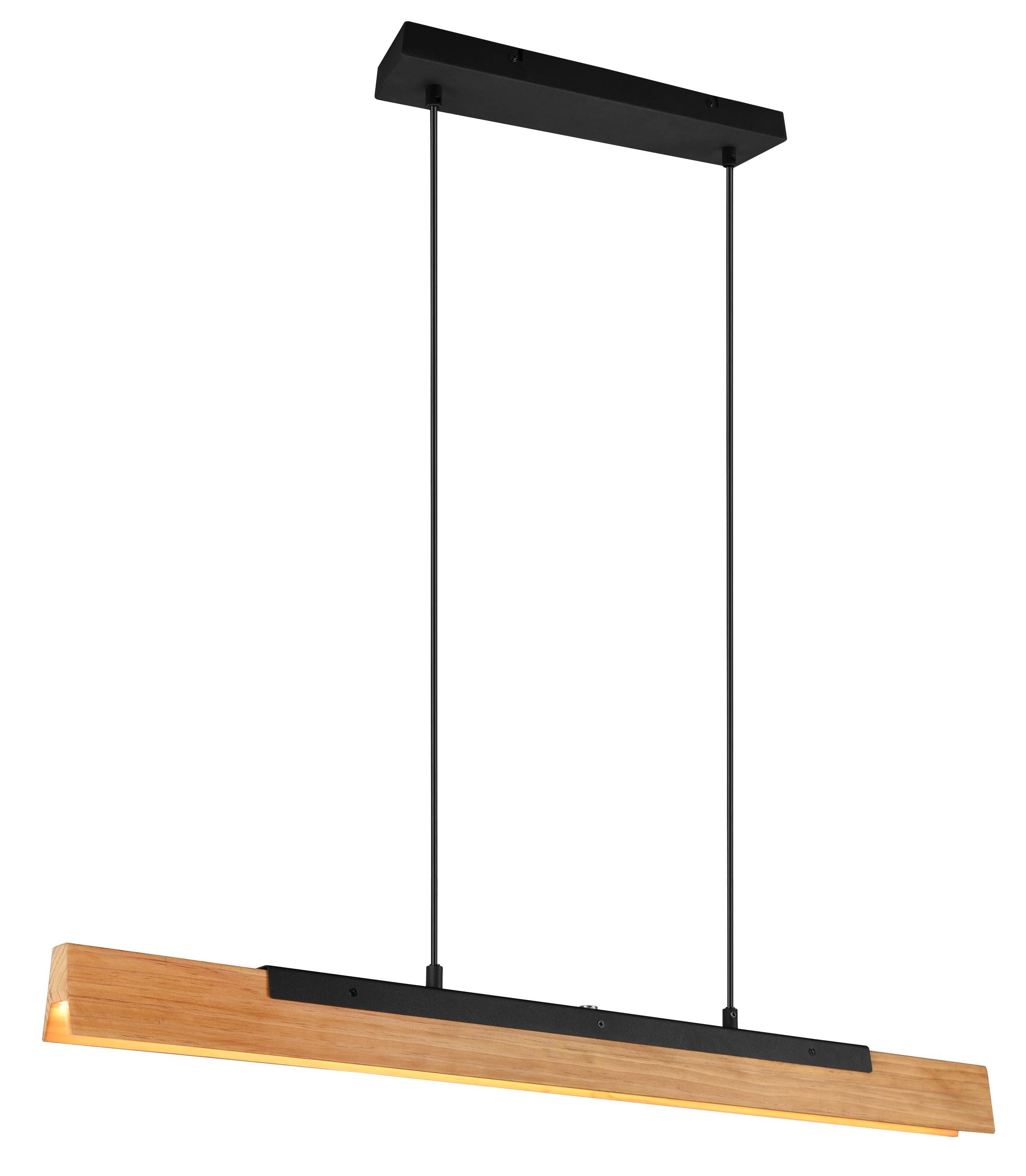 Die Pendelleuchte KERALA lässt sich dank ihre Geradlinigkeit mit einer Leichtigkeit in eine Vielzahl von Wohnräumen integrieren. Durch die hochwertige Verarbeitung von Holz und Metall überzeugt die Leuchte in ganzer Linie und setzt durch das auffällige Design dekorative Lichtakzente. Mittels 4-fach Touch an der Leuchte lässt sich die Helligkeit ganz leicht anpassen. Die Farbgestaltung in Schwarz matt schafft in Kombination mit dem naturbelassenem Holz ein gemütliches Ambiente in Ihrem Zuhause. Darüber hinaus verfügt die Leuchte über eine moderne LED Technologie, die sich durch eine hohe Lichtqualität und Energieeffizienz auszeichnet. Im Vergleich zu herkömmlichen Halogen Leuchtmitteln lassen sich bis zu 80% der Energiekosten sparen. Zusätzlich haben LED Lichtquellen eine lange Lebensdauer, produzieren weniger Wärme und schonen die Umwelt. Features: - Vier verschiedene Helligkeitsstufen über Touch-Schalter auf der Leuchte einstellbar Technische Daten: - Gewichteter Energieverbrauch: 25 kWh/1000 h - Betriebsspannung: 230 V~ - Leistung: 25 W - Farbtemperatur: 3000 K - Lichtfarbe: warmweiß - Lichtstrom: 3000 lm - Lichtausbeute:120 lm/W - Farbwiedergabeindex (CRI): > 80 Ra - Schutzart: IP20 - Dimmbar: ja, in vier Stufen über Schalter an der Leuchte - Mittlere Lebensdauer: 30.000 h - Schaltzyklen: > 15.000 - Produkt enthält eine Lichtquelle der Energieeffizienzklasse E (EEK-Spektrum A – G) - Gehäusefarbe: schwarz / Holz - Maße (LxBxH): 900x85x1500 mm Lieferumfang: - 1x LED-Pendelleuchte