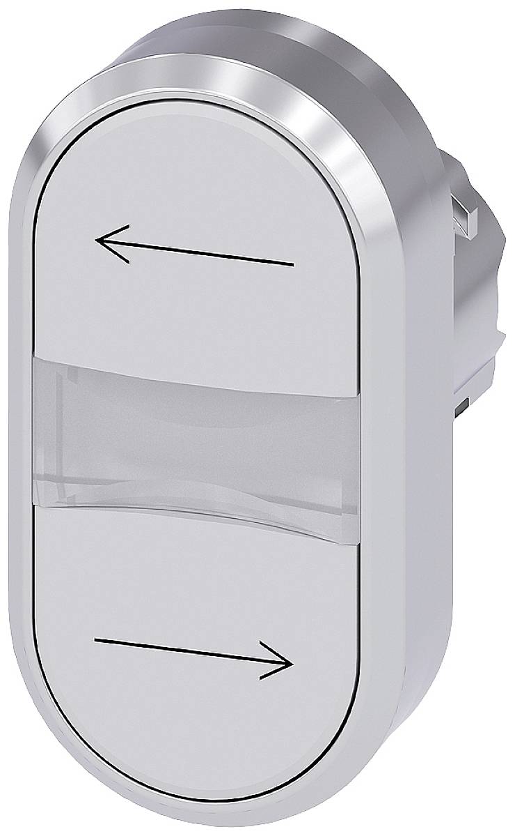 Doppeldrucktaster, 22 mm, rund, Metall, hochglanz, weiß: Pfeil nach links, weiß: Pfeil nach rechts, Druckknöpfe, flach Doppeldrucktaster SIRIUS ACT zur Realisierung von zwei tastenden Schaltfunktionen in einer Befehlsstelle.