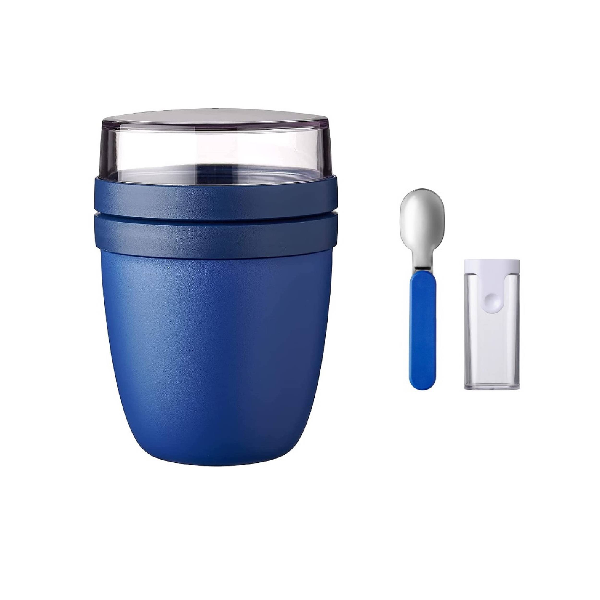 MEPAL: Der Mepal Klapplöffel Set mit Lunchpot Mini Ellipse ist eine durchdachte und vielseitige Lösung für alle, die ihr Frühstück oder Snack unterwegs genießen möchten. Dieses Set besticht durch seine kompakte und funktionale Bauweise, ideal, um Joghurt und Müsli frisch und getrennt zu transportieren.