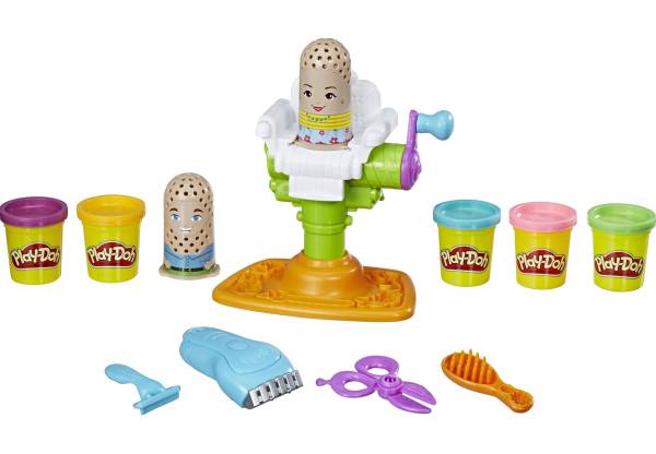Frisieren und rasieren mit Play-Doh! Bei Freddy Friseur wird der Friseurbesuch zum Kinderspiel. Der Gast nimmt auf dem Friseurstuhl Platz und durch Drehen der Kurbeln wachsen Haare und Bart im Nu. Dann kann die Frau mit Knetschere und Bürste kunstvoll frisiert und der Mann sogar rasiert werden. Mit dem batteriebetriebenen Haartrimmer und den lustigen Geräuschen macht es doppelt Spaß. Inklusive fünf Dosen Play-Doh. Batterien nicht enthalten.