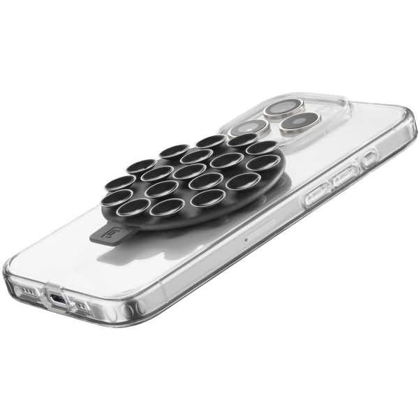 BUBBLE ist eine Doppel-Saugnapfhalterung für Smartphones. Ausgestattet mit 19 Saugnäpfen pro Seite sorgt es für einen starken und sicheren Halt auf Oberflächen. Außerdem kann es dank der praktischen Lasche leicht entfernt werden. Es wird empfohlen, das Produkt auf glatten Hüllen zu verwenden und auf glatten, flachen und sauberen Oberflächen zu befestigen. Hergestellt aus weichem Silikon, ist BUBBLE leicht zu reinigen, indem es unter fließendem Wasser gewaschen wird.