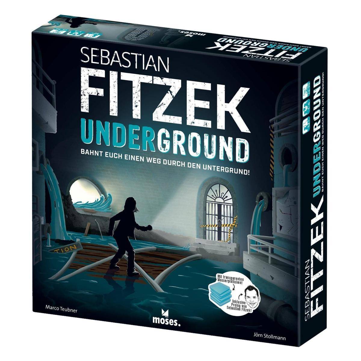 Ein ahnungsloser Nachmittagsausflug endet im Alptraum: Eine Mischung aus Zufall und Neugier führt euch tief unter die Erde zu einem verlassenen U-Bahnhof. Plötzlich Schreie. Hilferufe! Ihr folgt den Geräuschen… aber jemand anders folgt euch. Da – der Schein einer Taschenlampe! Schnell weg! Wo ist nur der Ausgang? Und dann steigt auch noch das Wasser…Kein Geringerer als der Meister des Psychothrillers, Sebastian Fitzek, hat sich diese Szenerie als Setting für sein drittes Brettspiel UNDERGROUND ausgedacht. Und was er auf Papier gebracht hat, hat der renommierte Spiele-Autor Marco Teubner kongenial umgesetzt in ein 3D-Thriller-Spiel, der den beiden Vorgängern „Safehouse“ und „Killercruise“ in nichts nachsteht. Besonderes Spielmaterial wie große Puzzleteile für Mauern und Stege, sowie hochwertige Acrylplättchen für das Wasser bilden im Laufe des Spiels einen spektakulären 3D-Aufbau, der sich aus der Box emporhebt. Das Spielprinzip ist eingängig und intuitiv, jede Partie ist neu und lässt sich dank unterschiedlicher Anfangsszenarien immer wieder variieren. Das ideale Spiel für alle Fitzek-Fans, und alle, die gut gemachte Brettspiele lieben!