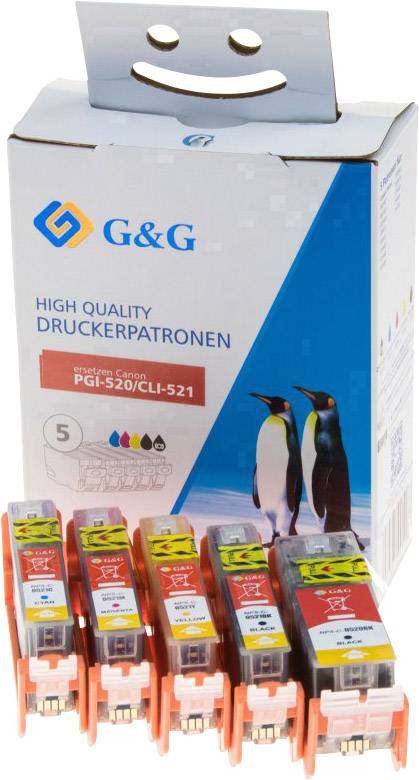 G&G Tinte ersetzt Canon PGI-520, CLI-521 Kompatibel Kombi-Pack Schwarz, Photo Schwarz, Cyan, Magenta, Gelb 14788