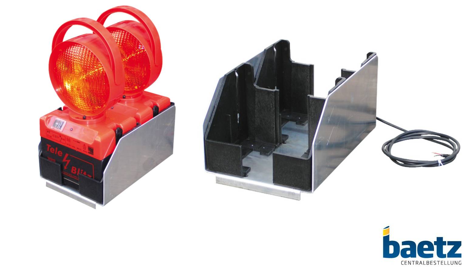 Die baetz Tele-Blitz Lade- und Transportbox ist aus Edelstahl gefertigt und lädt bis zu sechs "Tele-Blitz Akku-Leuchten" gleichzeitig. Der Anschluss kann über das 12 Volt oder 24 Volt Bordnetz erfolgen. Es können die Varianten baetz Tele-Blitz, Tele-Blitz LED und Tele-Blitz Synchron geladen werden.