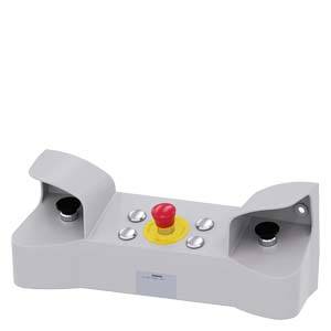 Zweihand-Bedienpult für Befehlsgeräte, 22 mm, rund, Gehäusematerial Metall, Gehäuseoberteil grau, 3 Befehlsstellen Metall, 4 zusätzliche Bohrungen für 22 mm-Befehlsgeräte 2 PILZDRUCKTASTER SCHWARZ 40MM, 2x 1S+1Ö, Schraubanschluss, 1 NOT-HALT rot, 40 mm, 2Ö, Schraubanschluss, Frontbefestigung, 4x Blindverschluss Metall, mit Kabeldurchbrüchen für metrische Verschraubungen Zweihand-Bedienpult SIRIUS ACT für Maschinen und Anlagen mit größerem Gefahrenpotential (z.B. für erhöhte Sicherheit an Pressen, Stanzen) gemäß EN 574.