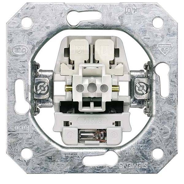 DELTA Taster-Geräteeinsatz, UP mit Dauerlichtbeleuchtung 1 Wechsler, mit N-Klemme 10A 250V