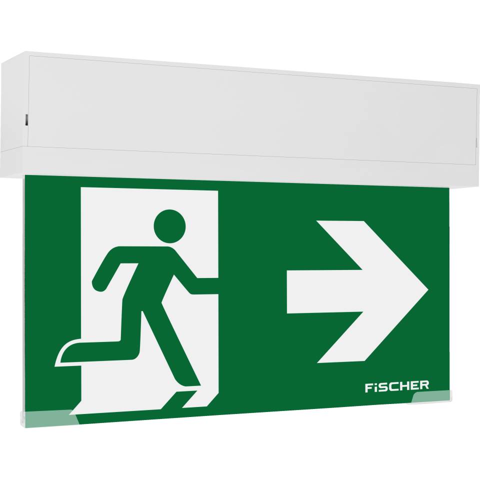 FiSCHER LED-Rettungszeichenleuchte Typ S1, mit AUTOTEST-Funktion, Montageart: Wand-/Deckenanbau, Leistungsaufnahme: 3 W, Schutzart: IP 41, Schutzklasse: II - LiFEPO4, Betriebsdauer: 3/8 Stunden, Material Gehäuse: Kunststoff, Scheibe: Steckfolie, Maße: 283 x 199 x 50 mm, Lieferung inklusive Satz Piktogrammfolien Pfeil links, Pfeil rechts,Pfeil unten und Pfeil oben