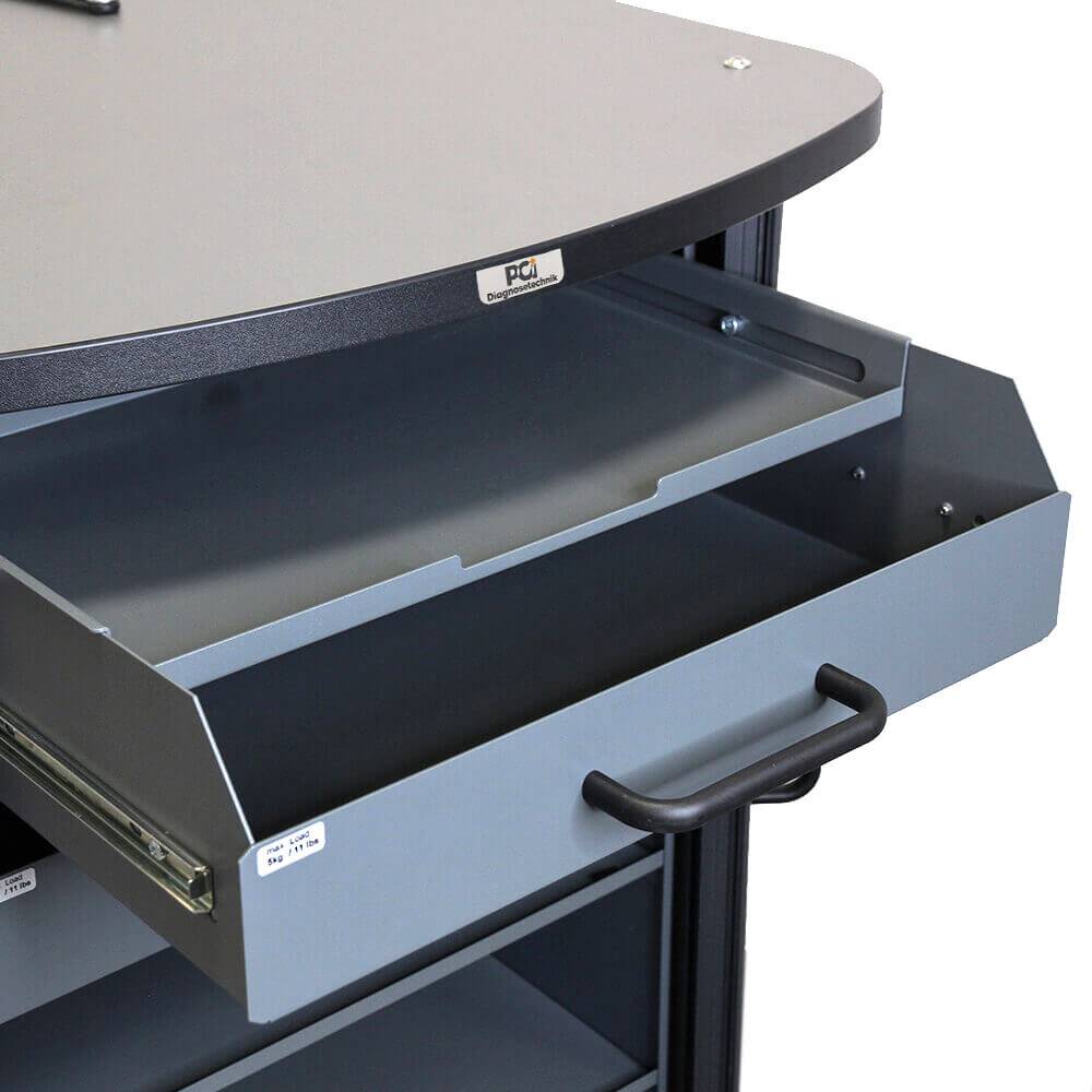 • Gleitet auf Schubfach, daher Stauraum des Schubfachs voll verfügbar