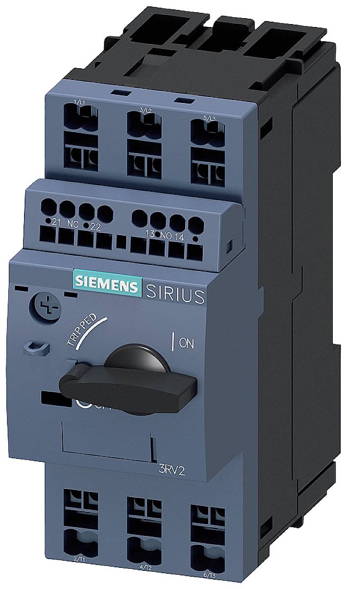 Leistungsschalter Baugröße S00 für den Motorschutz, CLASS 10 A-Auslöser 10...16 A N-Auslöser 208 A Federzuganschluss Standardschaltvermögen mit querliegenden Hilfsschalter 1S+1Ö Leistungsschalter SIRIUS 3RV2 für Motorschutz zum sicheren Abschalten bei Kurzschluss und Schutz der Verbraucher und Anlage vor Überlast, sowie zur sicheren Trennung der Anlage vom Netz.