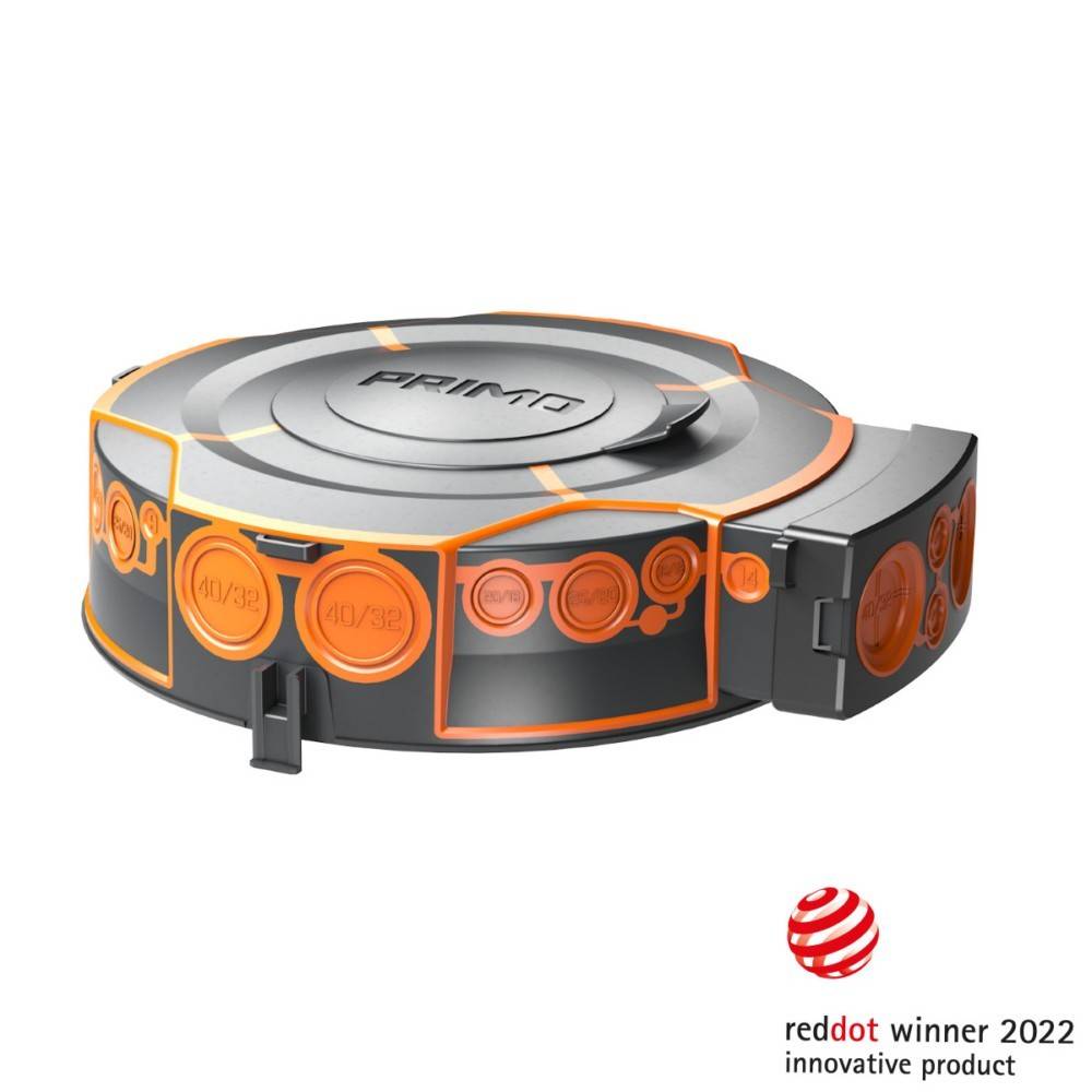 Mit dem XL 250 Einbaugehäuse können Leuchten, Lautsprecher sowie weitere Einbaugeräte schnell und einfach montiert werden. Das absolut betondichte Gehäuse bietet mit einem Durchmesser von 300 mm Platz für bis zu 26 Leitungen und Rohre von M9 bis M40. Darunter befinden sich 14 Kombieinführungen für maximale Flexibilität. Die Membrantechnik ermöglicht eine werkzeuglose Einführung und dank dem integrierten Rohrgrip sind die Rohre sicher zugentlastet. Durch den Rohrstopper entfällt das nachträgliche Abschneiden der Rohre im Gehäuse, wodurch zeitaufwändige Nacharbeiten der Vergangengenheit angehören. Der abnehmbare Deckel ermöglicht das Einziehen der Kabel und Leitungen in das Gehäuse bereits vor der Betonage. Der integrierte Anschlussraum eignet sich z.B. für elektronische Bauteile. Aufsteckbare Flügel zur Befestigung an der Stahlarmierung sowie ein Universaltrafotunnel für zusätzlichen Anschlussraum sind separat erhältlich.