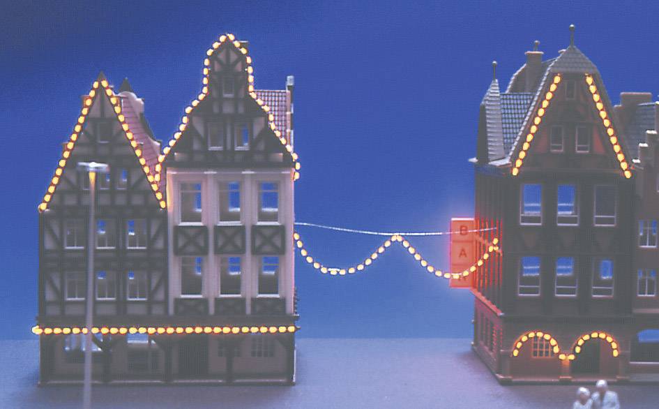 Für die unterschiedlichsten Anwendungen eignen sich diese Lichterketten als Dauerlicht oder Lauflicht. Insbesondere zur Illumination von Gartenpartys, Häusergiebeln und natürlich Kirmesmodellen.