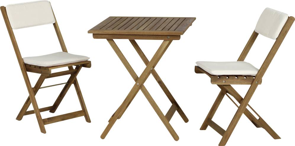 Gartenmöbelset ALMERIA, 3 teilig aus Akazienholz FSC® 100% geölt in natur, Kissen aus Polyester 180 g/m² in natur.