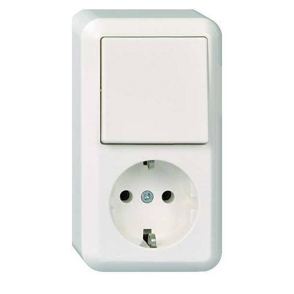 ELSO CONTURA Aufputz IP20 Programm lieferbar in den Farben reinweiß, perlweiß und braun Schutz Kontakt-Steckdosen 16 A 250 V AP IP44 ELSO CONTURA 1Install.Baumaterial / Schaltermat/Geb.Steu Schalter Steckdosenm - ELSO Contura AP Kombination 388604 Wechsel + Schukosteckdose reinweiss