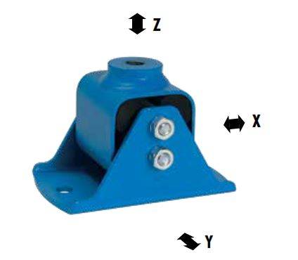 - dieser Schwingungsdämpfer ist Vielrichtungsdämpfer und kann Druck-, Zug- und Schub-, speziell auch kombinierte Belastungen, aufnehmen