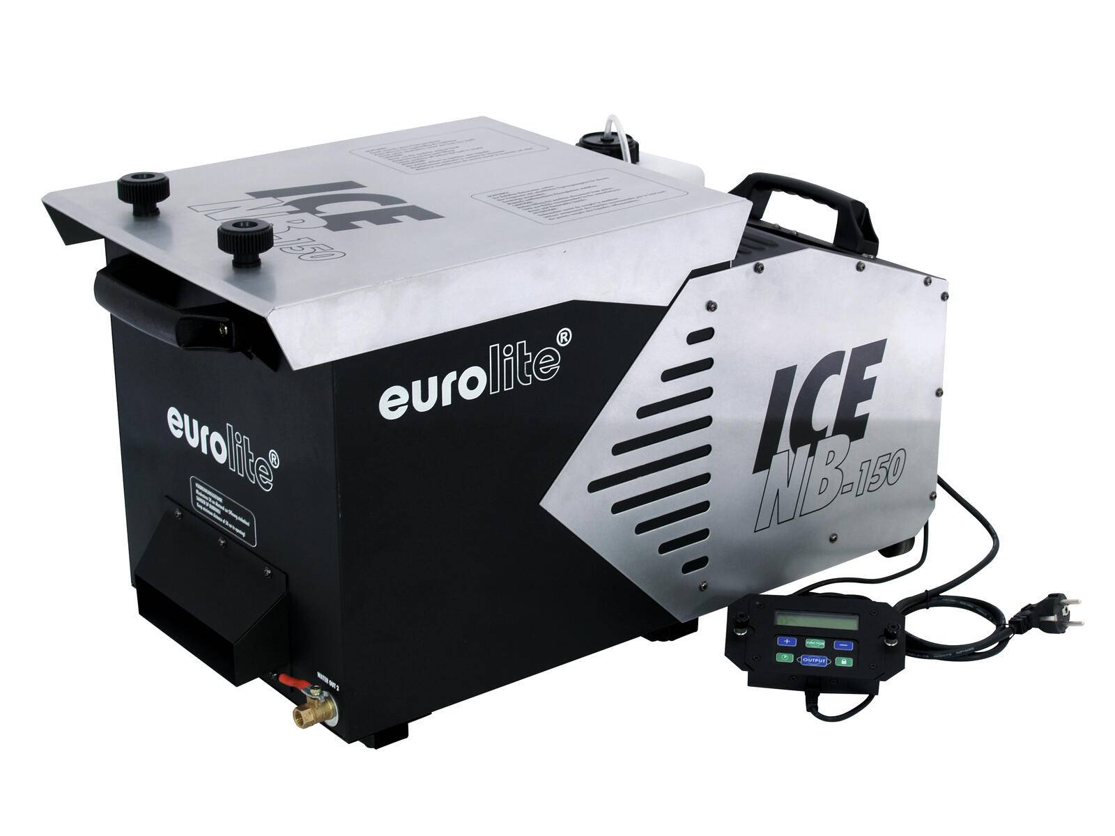 Einfaches Bodennebelgerät mit 1500 W, Fernbedienung, EiswürfelkühlungDer EUROLITE NB-150 ICE Bodennebler erzeugt große Mengen tief liegenden Bodennebel. Er ist für Bühnen und Diskotheken optimal geeignet. Punkten kann der NB-150 ICE mit seiner kurzen Aufwärmzeit und seinem niedrigen Fluidverbrauch. Er funktioniert mit herkömmlichem Nebelfluid und Eiswürfelkühlung. Um 25 Minuten Dauernebel bei vollem Ausstoß zu erhalten, müssen Sie den Bodennebler mit vier Kilogramm Eiswürfeln befüllen. Sie können den NB-150 ICE ganz einfach über die Ablassvorrichtung entleeren und reinigen. Der Tank ist herausnehmbar. Die Auslösung des Nebeleffekts erfolgt per DMX oder über das integrierte Steuermodul mit LCD-Anzeige. Alternativ können Sie den Bodennebler ganz einfach mit der kabelgebundenen Fernsteuerung ansteuern.Die Temperatur können Sie mit dem Thermoschalter einfach regeln. Intervalle, Dauer und Nebelmenge sind ebenfalls - je nach Ihren Bedürfnissen - variabel einstellbar. Das stabile Metallgehäuse ist mit Tragegriffen und Transportrollen ausgestattet.