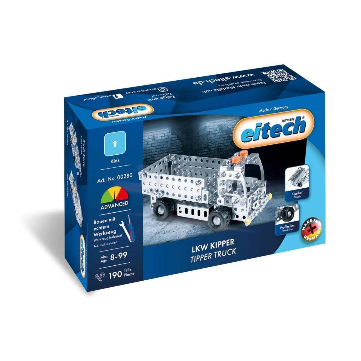 Für kleine Fans großer Baufahrzeuge: Der eitech LKW Kipper aus der „Kids“ Kollektion, ein authentischer Lastwagen für Hobby-Schrauber.