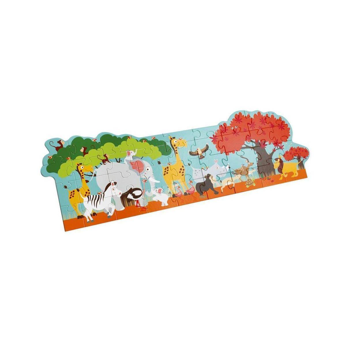 Setzen Sie alle 36 Puzzleteile nacheinander zusammen und entdecken Sie die wilden Tiere des Dschungels mit diesem wunderbar detaillierten Bodenpuzzle von Scratch! Hast du es geschafft, das Rätsel zu lösen? Dann ist es Zeit für ein Abenteuer bei einer Safari in der heißen Savanne. Dieses Riesenpuzzle mit den Maßen 100 x 33 cm lässt sich auf dem Boden oder Tisch zusammensetzen und ist für Puzzle-Fans ab 3 Jahren geeignet. Und jetzt... ist Rätselzeit!