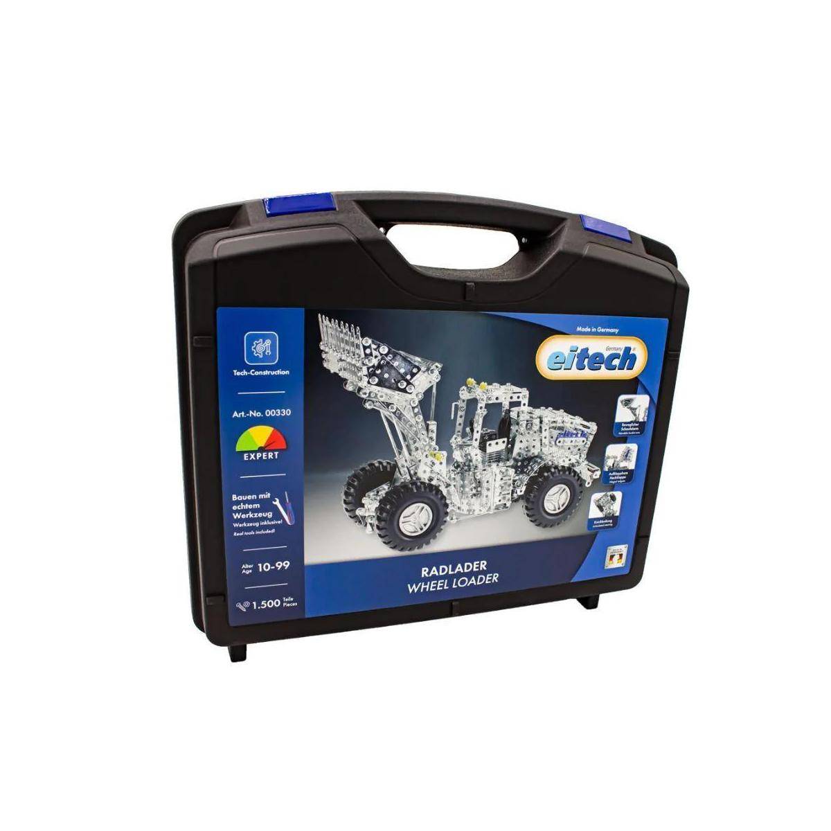 Der eitech Radlader ist ein wahrer Gigant. Mit seiner enormen Leistung und seinen riesigen Abmaßen ist er perfekt für den Einsatz im Steinbruch oder auf der Großbaustelle geeignet. Das Bewegen großer Erd- oder Steinmassen ist sein Auftrag. Sein beweglicher Schaufelarm macht diese Aufgabe kinderleicht. Der Arm und die Schaufel sind separat kippbar. Die leicht steuerbare Knicklenkung macht das Spielerlebnis perfekt. Diese kann durch ein Rad hinter dem Fahrerhaus bedient werden. Durch die großen Profilreifen und die große Bodenfreiheit kann er problemlos auch im schwierigen Gelände arbeiten. Und sollte er doch mal liegen bleiben, kann der Mechaniker schnell die riesige Heckklappe öffnen und nach dem Rechten schauen.