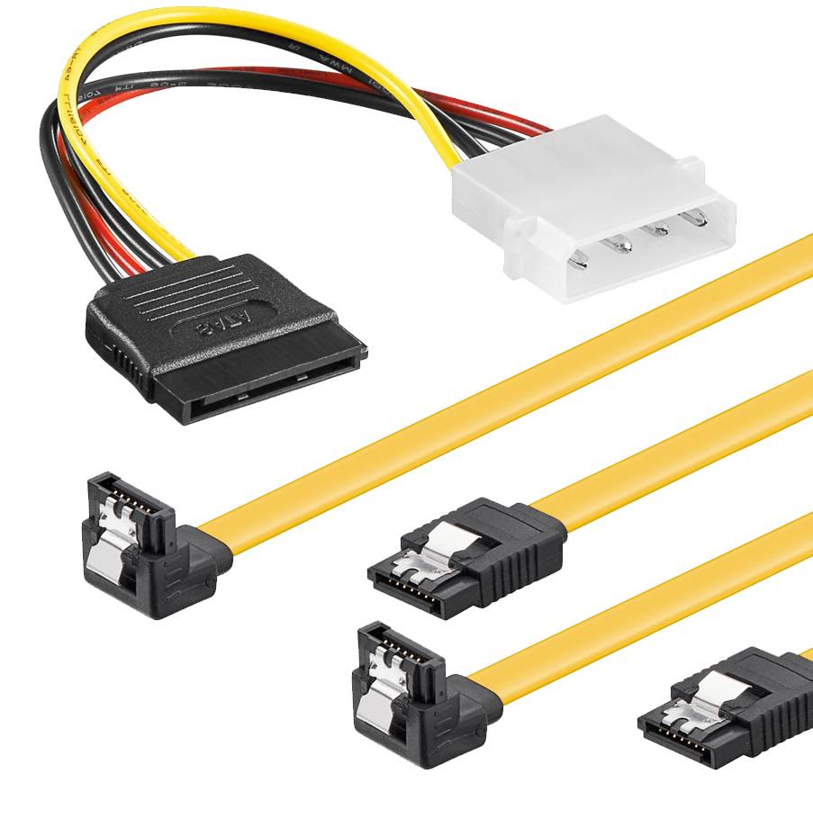 • Lieferumfang: 2x SATA 3 Kabel gewinkelt 50cm, Power-Adapter 4-Polig Molex -> 15-Polig 13cm