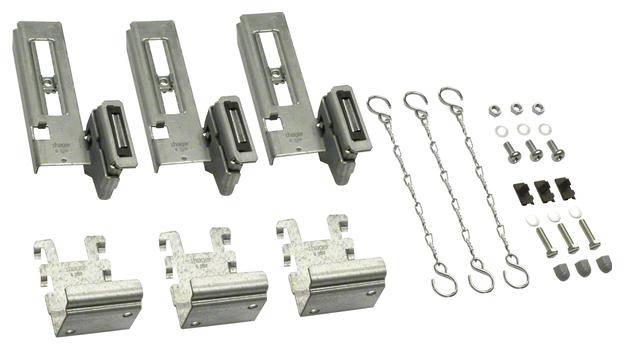 Bausatz Paneelverkleidung für Brüstungskanäle. Bausatz Paneelverkleidung für Brüstungskanäle bestehend aus: 3 Magnethalter, 3 Einstellhalter, Klammern, Schrauben, 3 Sicherungsketten.