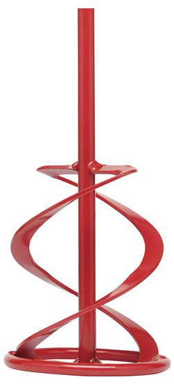 Die Bauart mit zwei spiralförmig angeordneten Mischwendeln erzeugt eine Mischwirkung von unten nach oben. So arbeitet er sich selbst in dichtere Materialien gut hinein und zieht sich selbstständig bis zum Eimerboden hinab. Dadurch fördert er insbesondere schwerere Materialbestandteile, wie z.B. Sandzuschläge effektiv nach oben. Besonders geeignet für schwerere, endfeuchte Materialien. Der geschlossene Schutzring am Rührkorb verhindert Beschädigungen am Mischeimer und sorgt für einen ruhigen Lauf des Rührers.