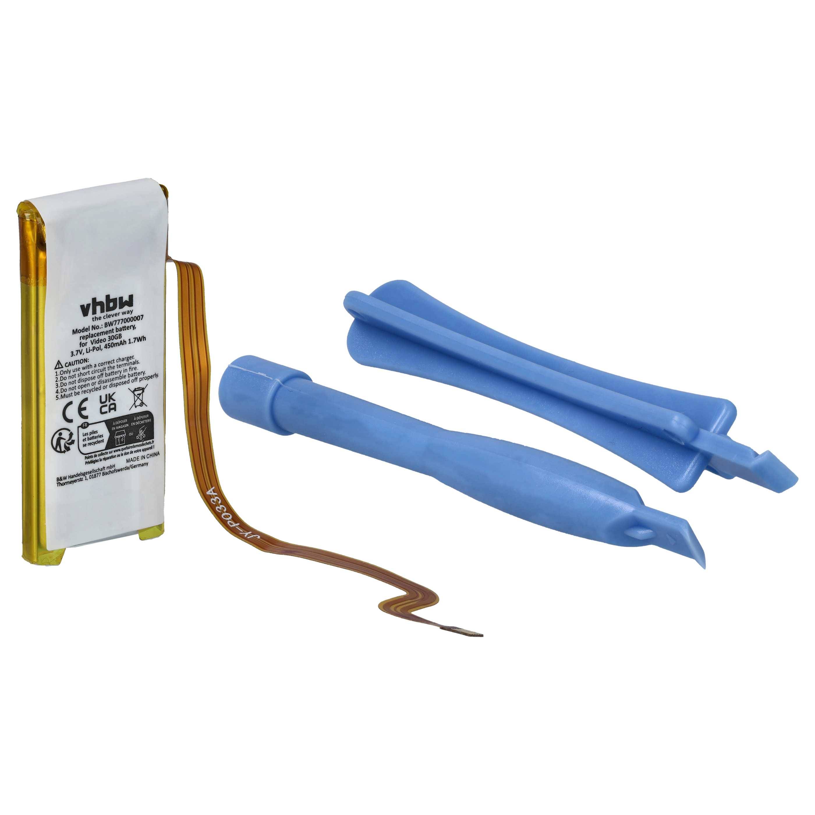vhbw Akku kompatibel mit Apple Ipod Classic 7. Generation A1238 120GB MP3-Player Musik Player (450 mAh, 3,7 V, Li-Polymer)