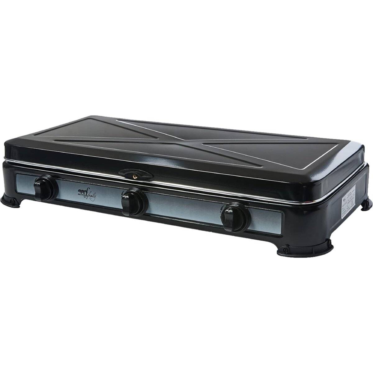Der Deckel schützt den Herd perfekt, wenn er geschlossen ist, die 3 Kochstationen ermöglichen es Ihnen, Ihre Lieblingsgerichte wie in Ihrer Küche zuzubereiten