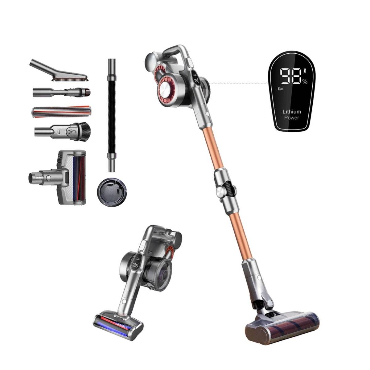 Wir präsentieren den kabellosen Staubsauger JIMMY H9 Pro – eine perfekte Reinigungslösung, die Effizienz, Komfort und innovative Technologien vereint. Ausgestattet mit einem 600-W-Motor und einer Saugleistung von 200 AW sorgt er für höchste Effizienz und meistert alle Arten von Schmutz. Bis zu 80 Minuten Betriebszeit im ECO-Modus ermöglichen es Ihnen, das gesamte Haus gründlich zu saugen, und durch die Vielfalt der Betriebsmodi können Sie das Gerät an Ihre Bedürfnisse anpassen. Zusätzliches Zubehör erleichtert die Reinigung auch an schwer zugänglichen Stellen und der LED-Bildschirm informiert über den Status des Geräts. Sein ergonomisches Design macht die Verwendung zum reinen Vergnügen. Entscheiden Sie sich für JIMMY H9 Pro und genießen Sie mühelos ein perfekt sauberes Zuhause!
