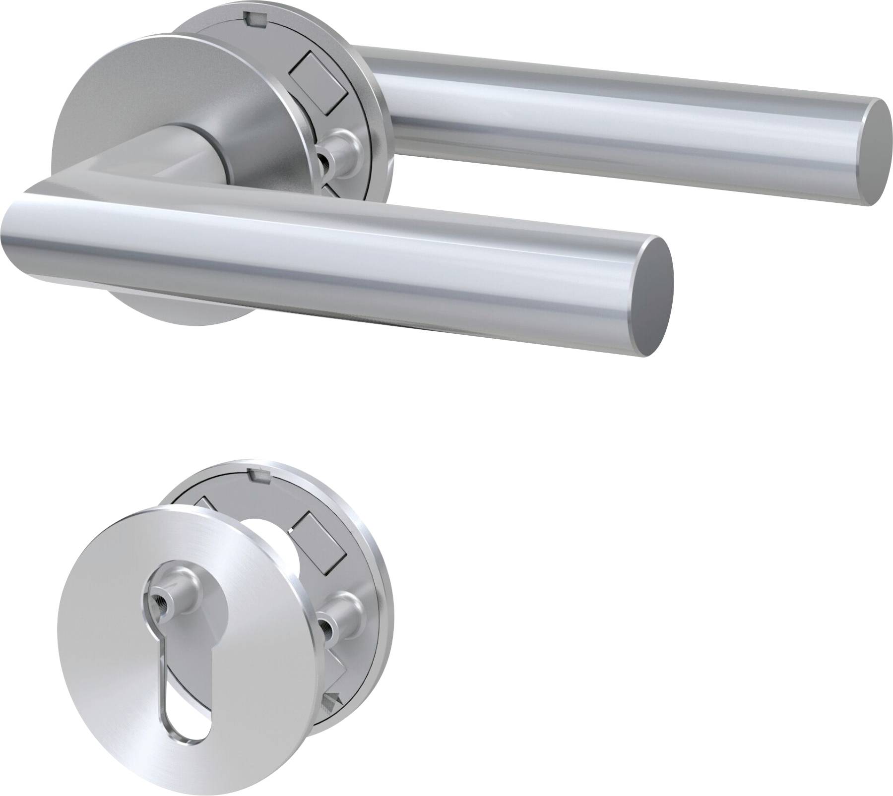 Drückergarnitur aus hochwertigem Edelstahl, für DIN Rechts/Links Türen geeignet