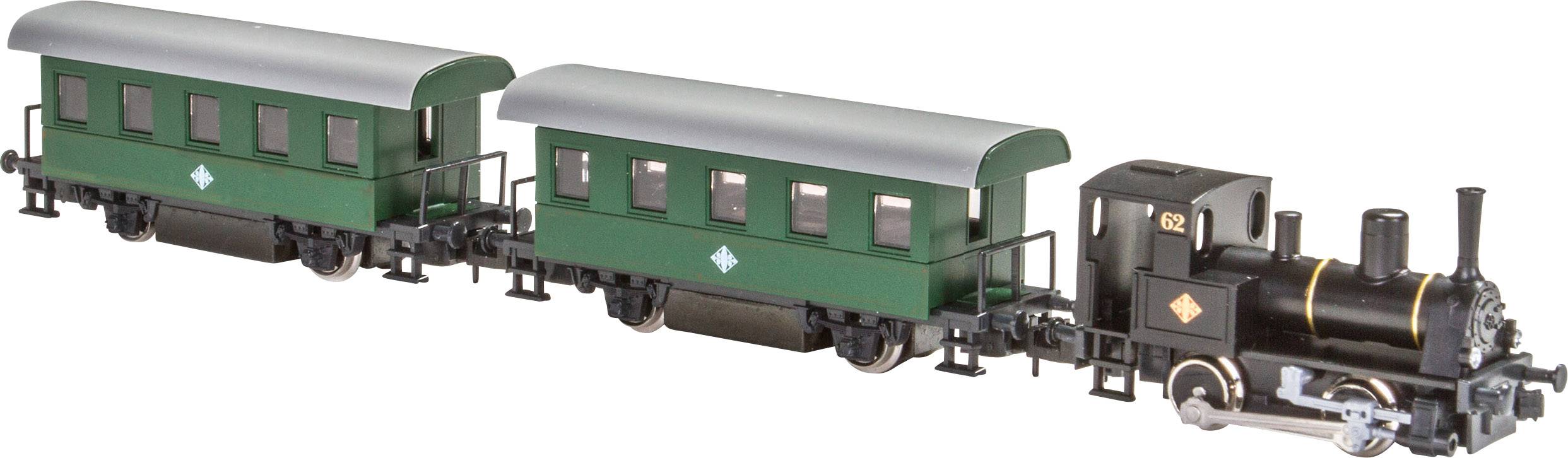 Mit diesem 3-tlg. Personenzug (die Lok ist einer bayrischen D6 Berg nachempfunden, die Wagen sind an Österreichische Spantenwagen angelehnt) startete Kato vor vielen Jahren die erfolgreiche Serie Pocket Line. Die kleine 2-achsige Lok ist relativ zierlich, da der Antrieb im Chassis des 1. Personenwagens untergebracht ist. Die Zugkraft reicht gut aus, um weitere 3 Waggons ziehen zu können. Der Antrieb erfolgt durch einen hochwertigen 5-pol Kato-Motor. Mit diesem Modell ist der Einstieg in die gute, alte Dampflokzeit leicht zur realisieren. Vorbilder für diesen Zug gibt es aktuell noch bei vielen schweizer, österreichischen, holländischen, französischen und deutschen Museumsbahnen und Vereinen.
