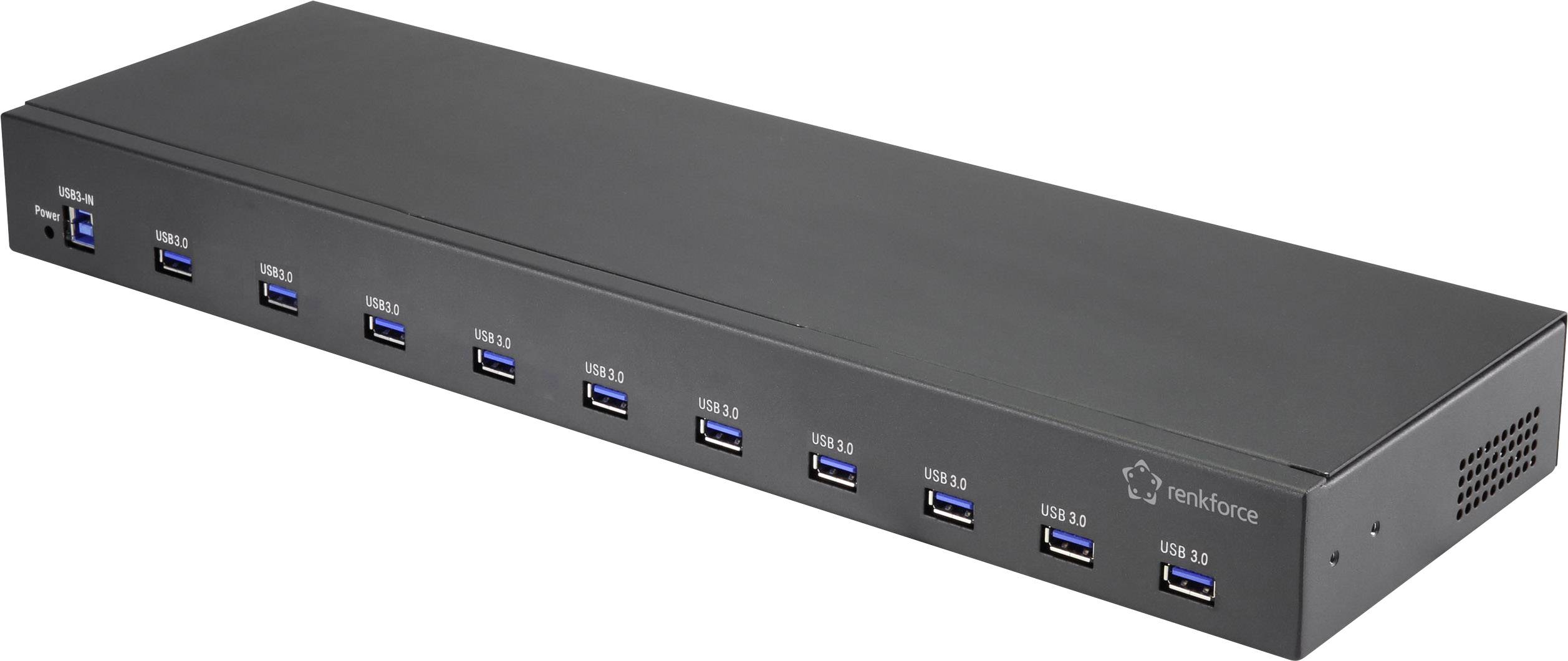 Renkforce RF-19"-USB3-10 10 Port USB 3.0-Hub für industrielle Anwendungen, Metallgehäuse Schwarz