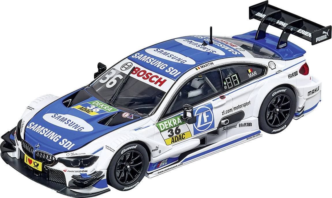 Die neue Version vom BMW M4 DTM hat alles, was ein Rennauto auf dem Weg zum Sieg braucht. Die innovative Technologie sorgt für eine Leistungssteigerung im Vergleich zum namensgleichen Vorgängermodell. Das schlichte Design des BMW M4 DTM mit Fahrer Maxime Martin in den Farben blau und weiß lenkt bei diesem Technikwunder nicht vom Wesentlichen ab. Martin gelang es in diesem Fahrzeug eine Top 10 Platzierung in der DTM Saison 2017 zu erreichen. Der BMW M4 DTM "M. Martin, No.36" ist ausgestattet mit Frontlicht und Rück-/ Bremslicht und beeindruckt durch die originalgetreue Verarbeitung. Das Carrera Auto ist individuell codierbar, digital steuerbar und bietet echten Fahrspaß.