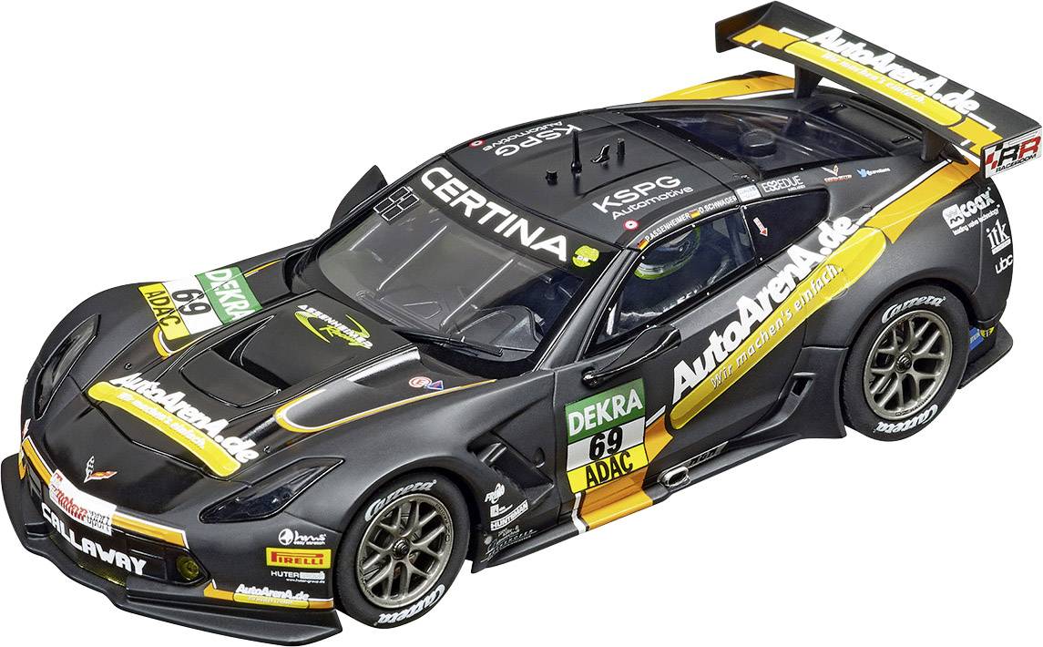 Die Corvette C7 GT3, das Nachfolgerfahrzeug des Erfolgsmodells Corvette Z06.R GT3, wurde von Callaway Competition entwickelt und konnte auch in der letzten Saison wieder eine beeindruckende Leistung zeigen. Mit einer Maximalgeschwindigkeit von 600 PS zeigt das Modell mit V8 Saugmotor und sequentieller 6-Gang-Schaltung auch bei der GT Championship am Red Bull Ring, welche Power in ihm steckt. Das Fahrzeug kann sich optisch aber auch abseits der Rennstrecke sehen lassen! Die Corvette C7.R "No.69" ist ausgestattet mit Frontlicht und Rück-/ Bremslicht und beeindruckt durch die originalgetreue Verarbeitung. Das Carrera Auto ist individuell codierbar, digital steuerbar und bietet echten Fahrspaß.