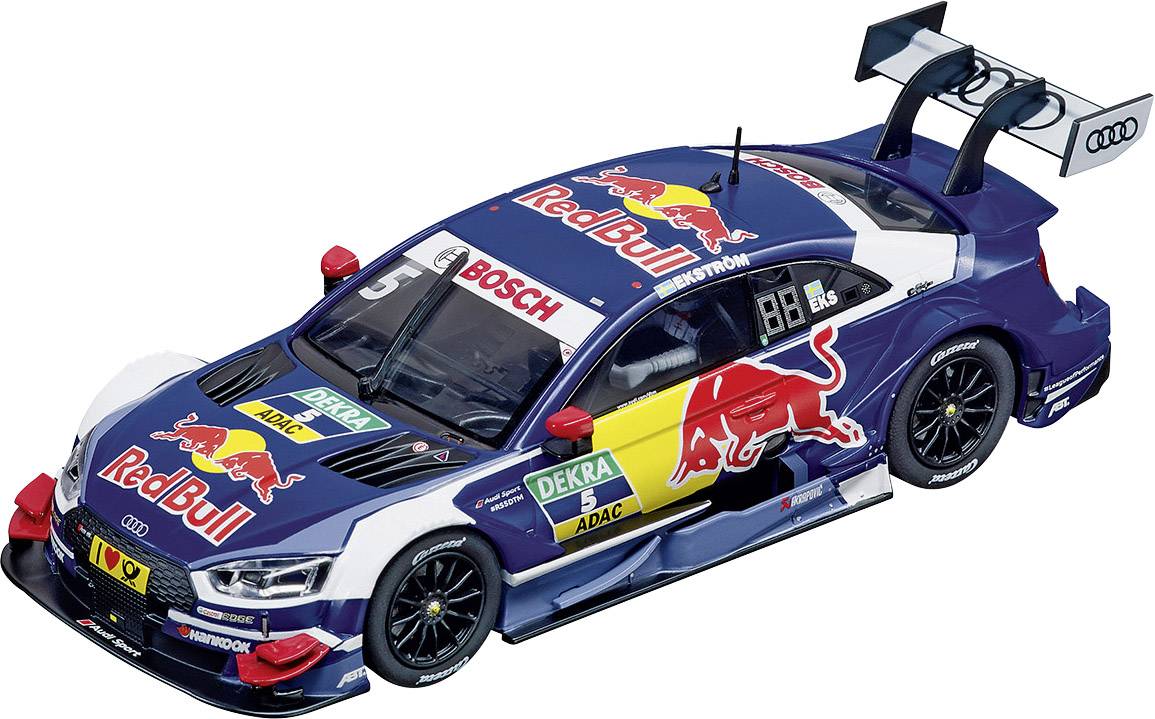 Die DTM-Rennversion des Audi RS 5 Coupé ist aerodynamisch noch extremer und progressiver als seine Vorgängermodelle. Mit einem vier Liter große V8-Motor ausgestattet, brachte das blauen Modell mit Red Bull Logo und der Startnummer 5 seinem schwedischen Fahrer Mathias Ekström in der DTM Saison den Titel des Vizemeisters ein! Das Carrera Auto ist individuell codierbar, digital steuerbar und bietet echten Fahrspaß. Der Audi RS 5 DTM "M. Ekström, No. 5" ist ausgestattet mit Frontlicht und Rück-/ Bremslicht und beeindruckt durch die originalgetreue Verarbeitung. Das Carrera Auto ist individuell codierbar, digital steuerbar und bietet echten Fahrspaß.