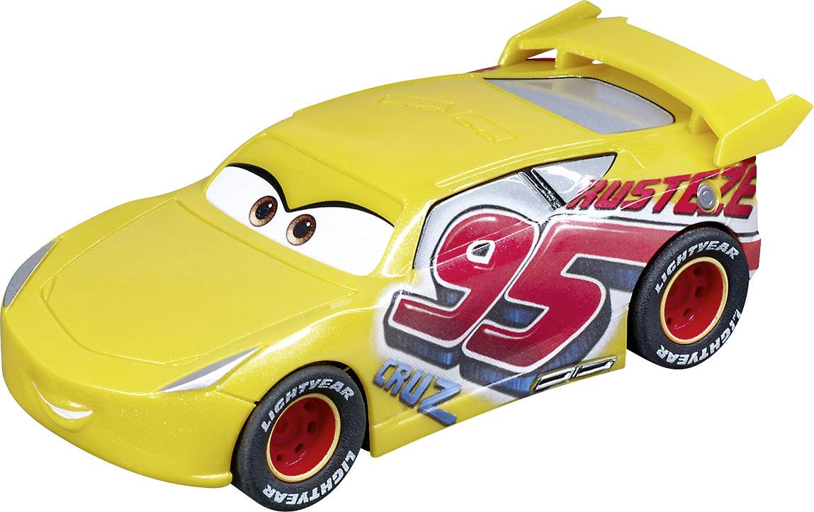 Die neue Überfliegerin im Cars Universum Im Kassenschlager Disney•Pixar Cars ist Cruz Ramirez die absolute Senkrechtstarterin, die sich gegen neue Herausforderer und alte Rennhasen durchsetzt. Auf der Carrera GO!!! Rennbahn fährt sie sich als „Rust-eze Cruz Ramirez“ in gelber Lackierung mit „Rust-eze“ Schriftzug in die Herzen der kleinen Rennpiloten.