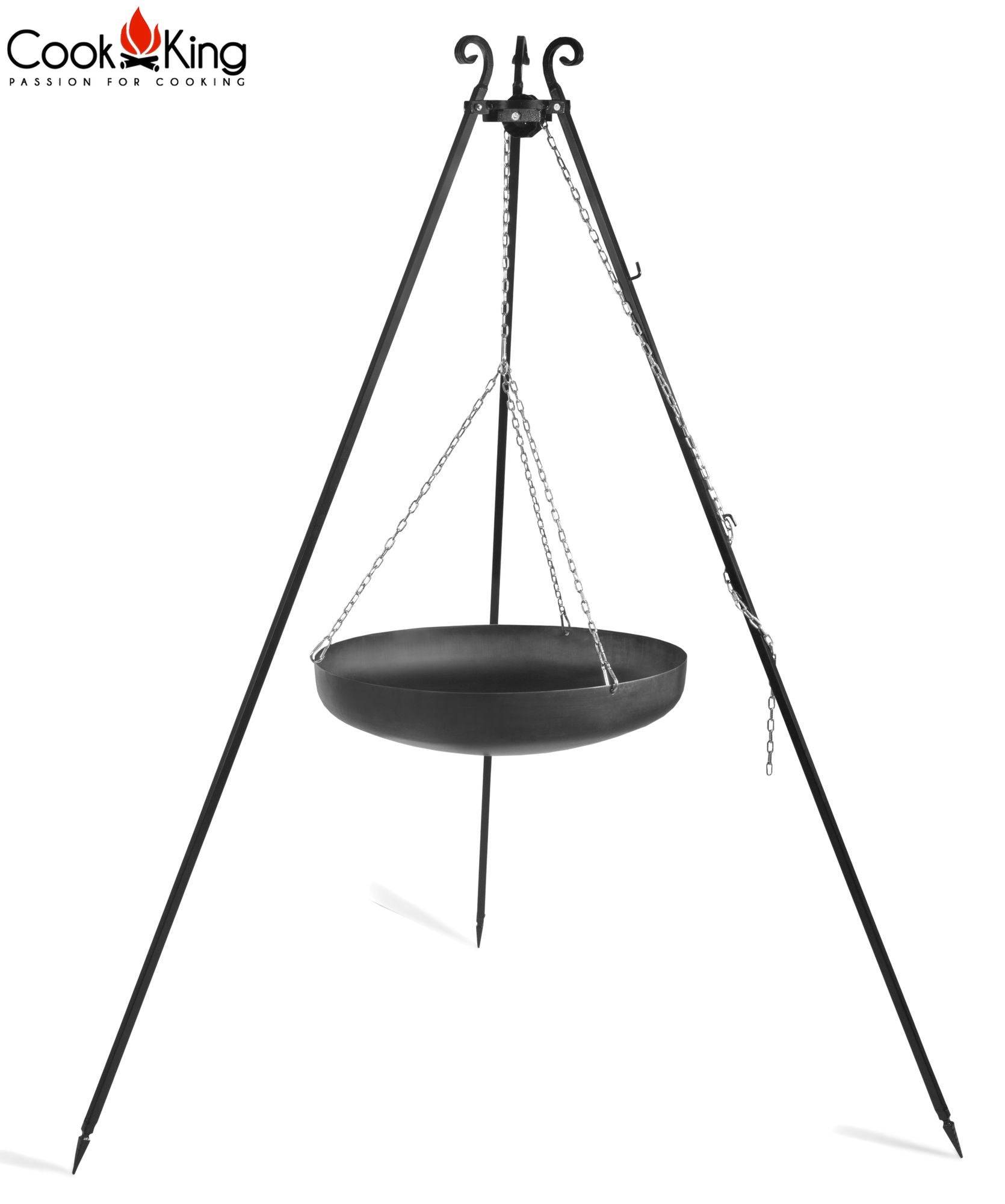 Technische Details:<br />Höhe des Schwenkgrills am Dreibein: ca. 180cm<br />Durchmesser des Wok Cook King: 70cm<br />Dicke der Wok Cook King: 1,5mm<br />Wok Cook King ist hergestellt aus: Naturstahl<br />Produktgewicht: ca. 14kg<br />Pulverbeschichtetes Dreibein: JA<br />In der Mitte faltbares Dreibein: JA<br /><br />"HANDGEMACHT" HOHE VERARBEITUNGSQUALITÄT, HERGESTELLT IN POLEN<br /><br />Produktbeschreibung:<br />Es lohnt sich, im Garten Speisen mit Hilfe von Wok anstelle eines herkömmlichen Rostes zuzubereiten. Das Dreibein mit einer Höhe von 180 cm ist pulverbeschichtet, was seine Wetterbeständigkeit erhöht. Bei diesem Wok kann sowohl ein gewöhnliches Feuer als auch traditionelles Kohlenbrikett als Wärmequelle verwendet werden. Der massive, aus dicken Materialien ausgefertigte Wok kann eine große Menge Essen halten. Das stabile Dreibein lässt den Wok auf jeder, auch auf einer unebenen, Fläche aufstellen. Dank den in der Mitte faltbaren Beinen hat das Produkt einen zusätzlichen Vorteil: Das Dreibein lässt sich schnell und einfach montieren, demontieren, transportieren und aufbewahren. Wegen der effektvollen Verzierungen mit geschmiedeten Elementen ist der Wok eine Augenweide. Dank diesem Produkt werden Sie im Stande sein, Fleisch- und Gemüsegerichte aller Art, überbackenen Fisch und sogar eine große Portion Rührei zuzubereiten. Einfache Regulierung des Woks ermöglicht eine schnelle Änderung dessen Höhe.