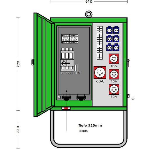 1 CEKON Steckdose 5-pol. 63 A, direkt ab FI-Schutzschalter
