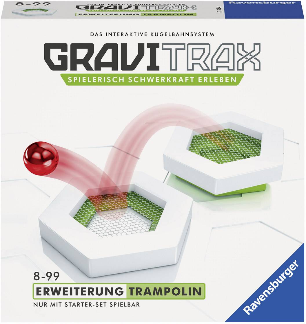 Trotze der Schwerkraft und lasse deine Kugel mit dem Trampolin imposant durch die Bahn hüpfen. Kombiniere das Trampolin mit dem GraviTrax Starter-Set und bringe noch mehr Action in deine Streckenverläufe. Wie weit und hoch springt deine Kugel auf dem Trampolin durch die Bahn?