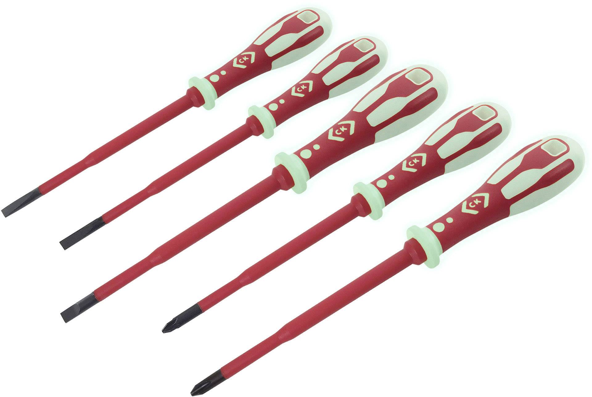 Schraubendrehergriffe aus phosphorisierendem Material - leuchten im Dunkeln ca. 20-30 Minuten. Isolierte Klingen mit schlankem Schaft - ermöglichen den Zugung zu versenkten Schrauben und Befestigungen. Keine Notwendigkeit mehr, die Isolation der Klingen abzuschneiden. VDE geprüft - individuell getestet mit 10.000 V für sicheres Arbeiten bis zu 1.000 V. Gemäß Normen EN 60900 / VDE0682/201, ISO 2380-2, ISO 8764. 100 % Made in Germany. Ergonomischer 2-Komponentengriff - speziell für Elektriker. Hochqualitativer Chrom-Vanadiumstahlschaft für außergewöhnliche Festigkeit und Dauerhaftigkeit. Kopfmarkierung, zum einfachen Erkennen der Größe. Präzise bearbeitete Spitze für exakte Anpassungen an die Schrauben und beschädigungsfreies Eindrehen.