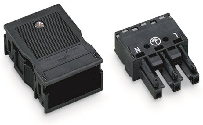 WAGO 770-103 Buchse,mit Zugentlastungsgehäuse, 3-polig,schwarz (Inhalt 25 Stück)