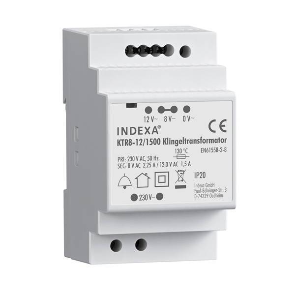 INDEXA Klingeltransformator KTR8-12/1500 8 und 12V AC 18VA 32126 Install.Baumaterial