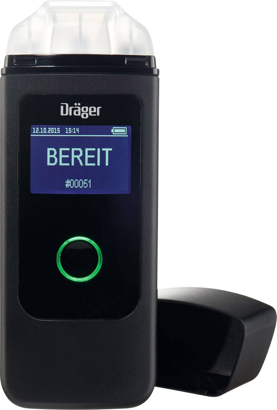 Die Messfunktion wird einfach über die hintergrundbeleuchtete Funktionstaste bedient. Optional bieten Signaltöne eine zusätzliche Orientierung. Das Gerät ist dann sekundenschnell einsatzbereit, der Atemtest kann sofort durchgeführt werden. Die Navigation im Menü erfolgt über die gleiche Taste. Das intuitiv aufsetzbare Mundstück wird durch eine Kappe geschützt. Für jede Testperson ist ein neues Mundstück zu verwenden. Als Zubehör sind zusätzliche Mundstücke verfügbar. Durch die Luftkanalführung wird ausgeatmete Luft über das Gerät geleitet und lediglich eine kleine Probe zur Auswertung daraus entzogen. Damit ist gewährleistet, dass es keine Anreicherung von Alkohol im Gerät gibt und alle Messungen präzise und verlässlich bleiben. Das gleiche Verfahren, das auch bei der Polizei zum Einsatz kommt. Egal ob in einer kühlen Winternacht oder an einem heißen Sommertag: Das Gerät ist innerhalb kürzester Zeit messbereit. Der Temperaturbereich für Messungen liegt bei -5 °C bis +50 °C. Durch sein kompaktes Format passt das Alcotest 3820 praktisch in jede Hosentasche. So können Sie jederzeit eine diskrete Messung durchführen – unabhängig davon, wo Sie sich befinden. Bei der Bestimmung des Alkohol- bzw. Restalkoholwerts erhalten Sie immer ein präzises Ergebnis, ob nach einem Geschäftsessen, bei einer Feier oder am Morgen danach. Das Alcotest 3820 wird in Deutschland gefertigt und erfüllt höchste Qualitätsansprüche. Durch eine regelmäßige Kalibrierung des Geräts sichern Sie sich auch auf lange Sicht eine präzise Messtechnik. Das weltweite Servicenetzwerk von Dräger gewährleistet dabei den Einsatz über viele Jahre.