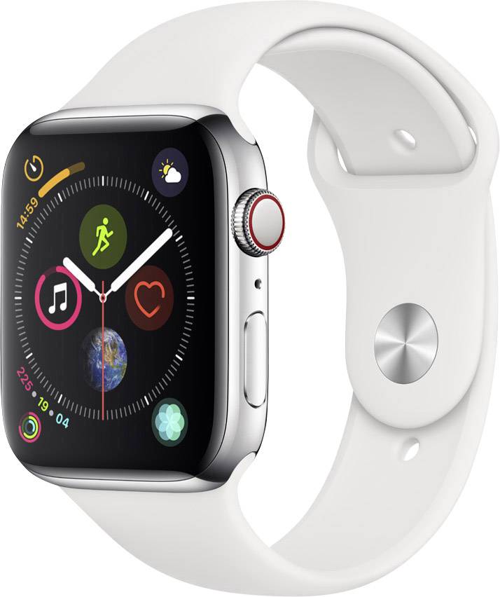 Apple Watch Series 4 GPS + Cellular 44 mm Edelstahlgehäuse Silber Sport Band Weiß