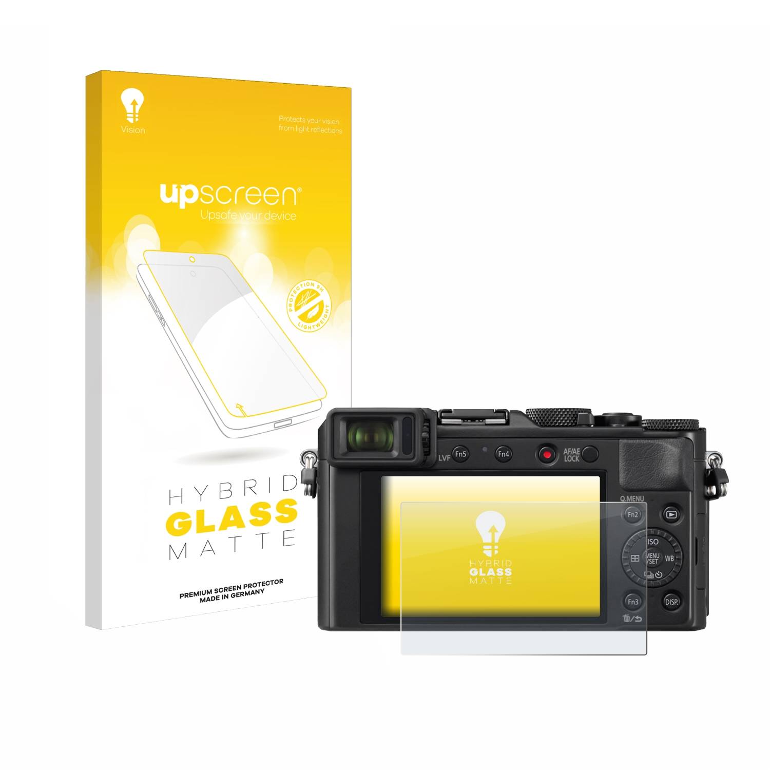 upscreen Hybrid Glass Matte Premium Panzerglasfolie bietet einen extra starken Displayschutz für Ihr Panasonic Lumix DC-LX100 II. Es schützt optimal vor Kratzer und zeichnet sich durch seine besondere Leichtigkeit, Flexibilität und angenehme matte Entspiegelung aus.