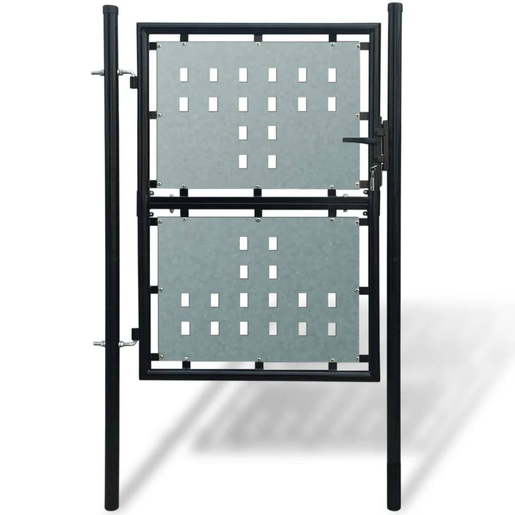 Dieses Gartentor im zeitgenössischen Stil dient als praktischer Eingang, um Ihren Garten von der Außenwelt zu trennen. Äußerst stabil und haltbar, wird das Zauntor eine praktische Barriere für Ihren Garten, Innenhof oder Ihre Terasse sein. Die verzinkten Bleche mit dekorativen Lochmustern verstärken den Rahmen, sodass unser Gartentor ein hohes Maß an Sicherheit bietet und zugleich einen fabelhaften Eingang zu Ihrem Grundstück darstellt. Das Tor ist aus strapazierfähigem Stahl gefertigt und pulverbeschichtet und somit gegen Rost und Korrosion gut geschützt. Zudem verfügt dieses Zauntor über zwei robuste Pfosten mit stabilen Scharnieren für eine einfache Installation. Ein robustes Schließsystem und drei passende Schlüsseln sind ebenfalls im Lieferumfang enthalten. Dieses Gartentor ist eine großartige Kombination zwischen Stil, Stärke, Stabilität und Korrosionsbeständigkeit!