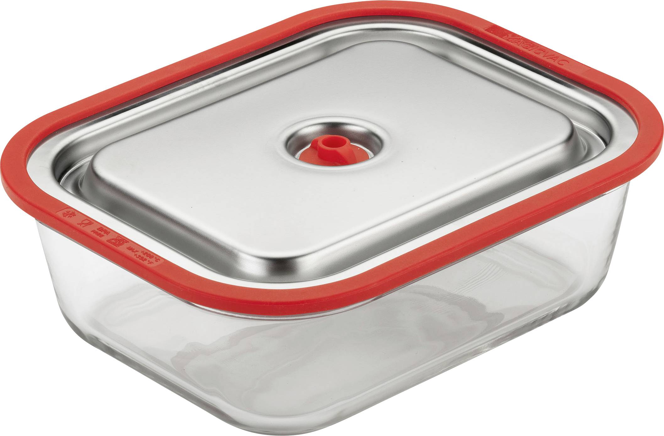 Vielseitiger Vakuumierbehälter; Geeignet zum Kochen, Vakuumverpacken (mit Vakuumiergerät) und Marinieren; Effiziente Lebensmittelkonservierung; Borosilikatglas, Stahl und Silikon; Direkt vom Gefrierschrank in den Ofen nutzbar; Spülmaschinenfest; Adapter für Luftabsaugung inklusive; Spezieller Hebel zum einfachen Öffnen des Deckels