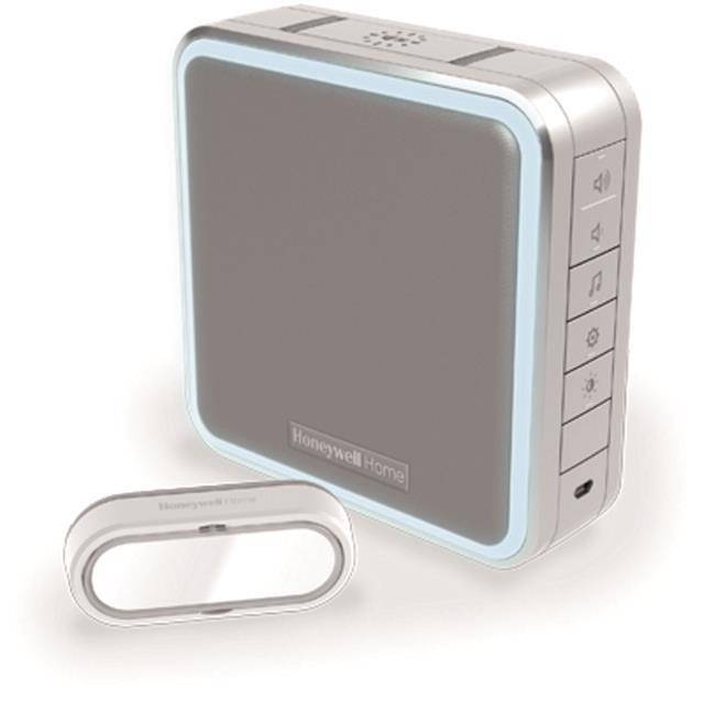 Funkgongs inkl. Klingeltaster mit Namensschild (Querformat) Set enthält: Funkgong und Klingeltaster (inkl. Batterie CR2032 des Klingeltasters) SilberInstall.Baumaterial / Hauskomm/Batt/Sicher Schwachstrommaterial - FRIED Funk-Gong-Set 200m 8Töne DC915SGL 90dB Lichtring Silbergrau Honeywell