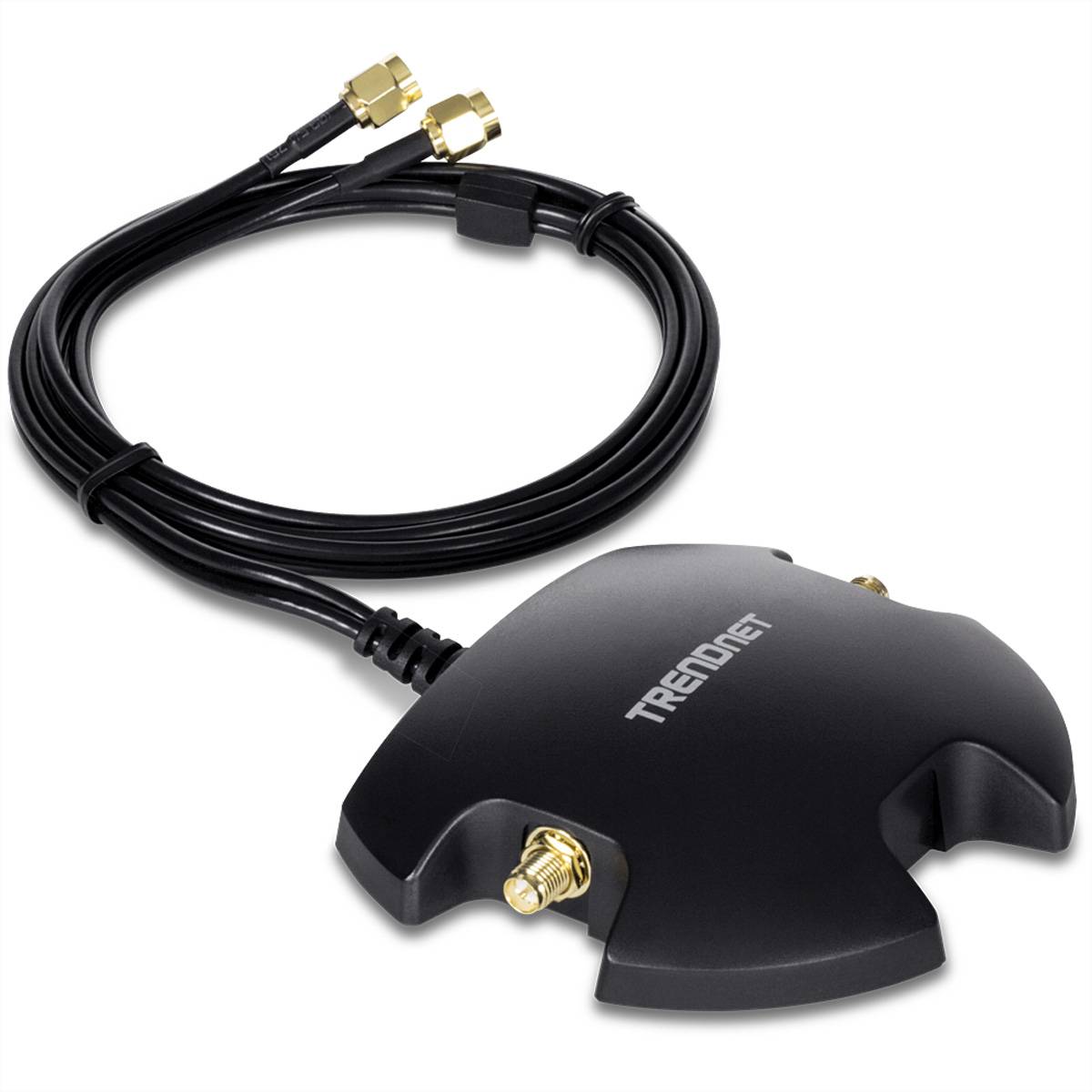 Der magnetische Dual-Antennen-Montagesockel RP-SMA-Buchse mit RP-SMA-Stecker-Verlängerungskabel von TRENDnet, Modell TEW-LB101, verlängert zwei aufWLAN Antennen / WLAN Antennen - TRENDnet TEW-LB101 Antennen-Halter, magnetisch, für 2 Antennen